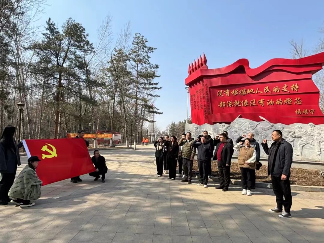 清明时节祭英魂,红色基因永传承。为缅怀革命先烈,发扬爱国主义精神,4月2日上午,皇冠博彩app党支部组织全体党员、积极分子、各部门负责人到磐石市东山红色文化主题公园,开展“铸魂·2024·清明祭英烈”主题祭扫活动。