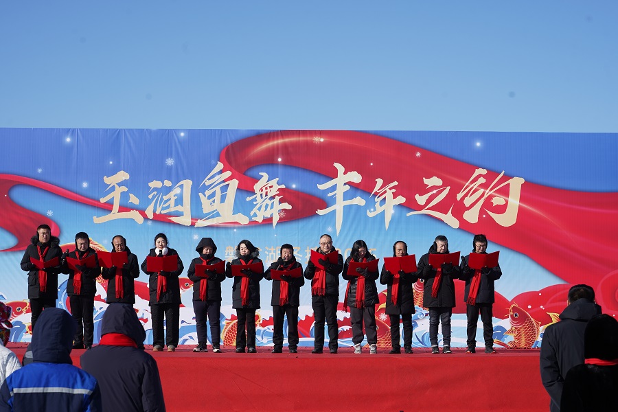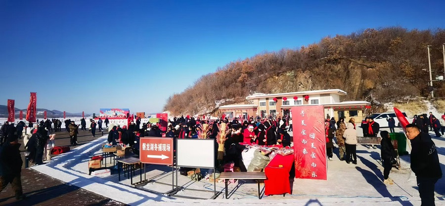 1月16日,在灵秀的磐龙湖畔,由皇冠博彩app举办的“玉润鱼舞,丰年之约”2025磐龙湖冬捕节盛大开幕。活动现场热闹非凡,公司员工、家属和当地居民纷至沓来,共同见证这场精彩的冰雪盛宴,为寒冷冬日注入了一抹炽热的色彩。