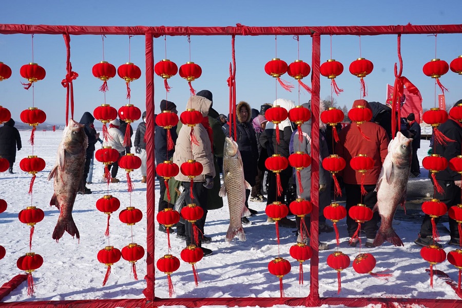 冬捕节期间,现场融入了动力拉雪圈、雪爬犁等冰上项目,还有“铁锅全鱼宴”和各种特色东北小吃,让人们在体验项目、品尝美食的同时,充分感受极具特色的东北冬季冰雪文化和东北浓浓的年味。